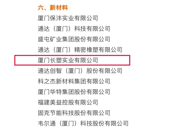 近日,廈門市民營經濟工作領導小組辦公室發布廈門市2022年度重點產業龍頭骨干民營企業認定名單,廈門長塑實業有限公司成功入選。